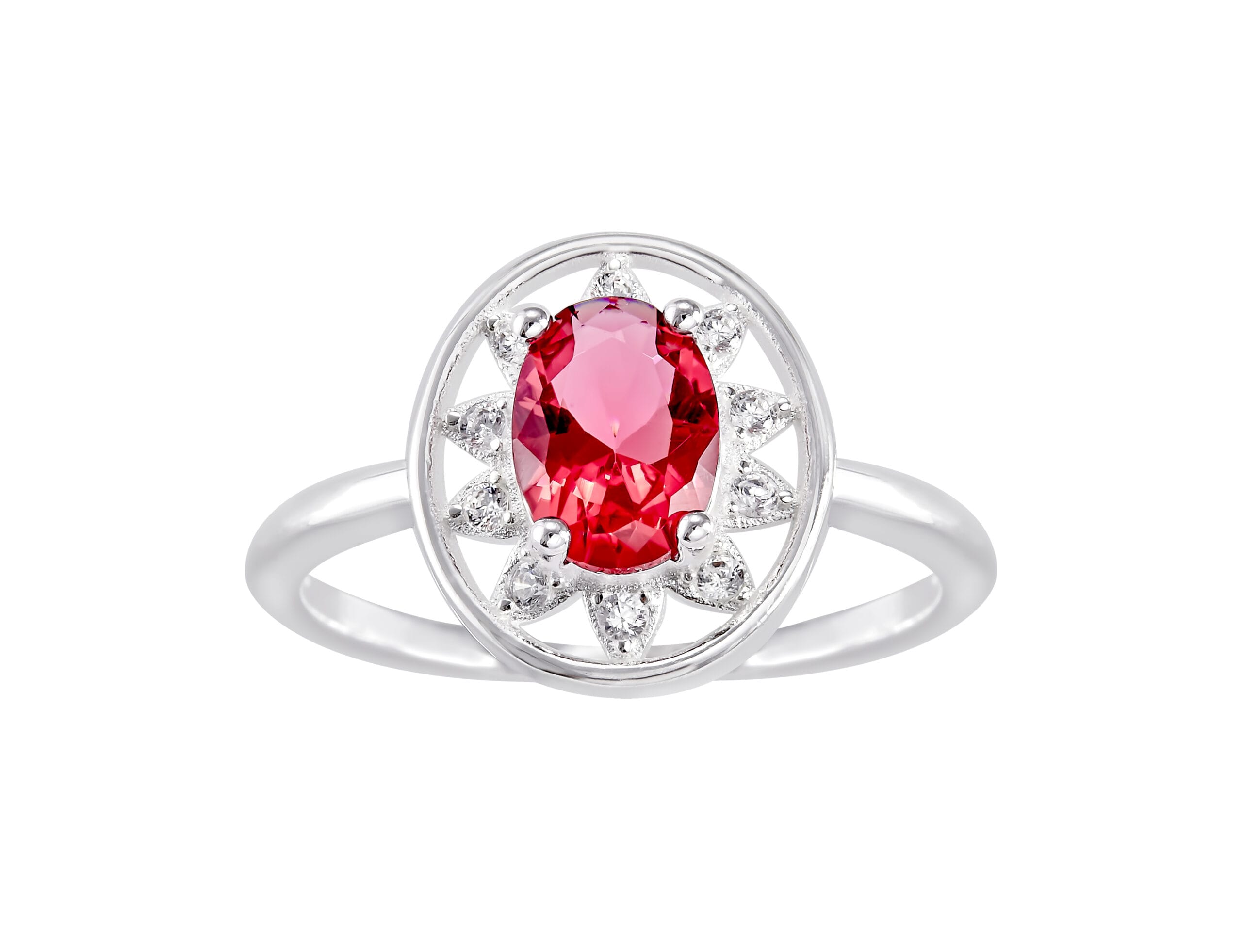 Anillo Flor Ovalo Zirconia Roja