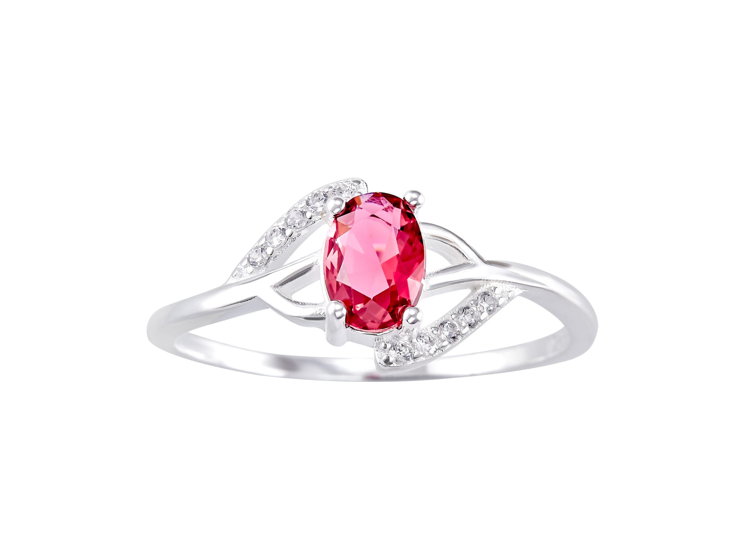 Anillo Ovalo Entrelazado Zirconia Roja