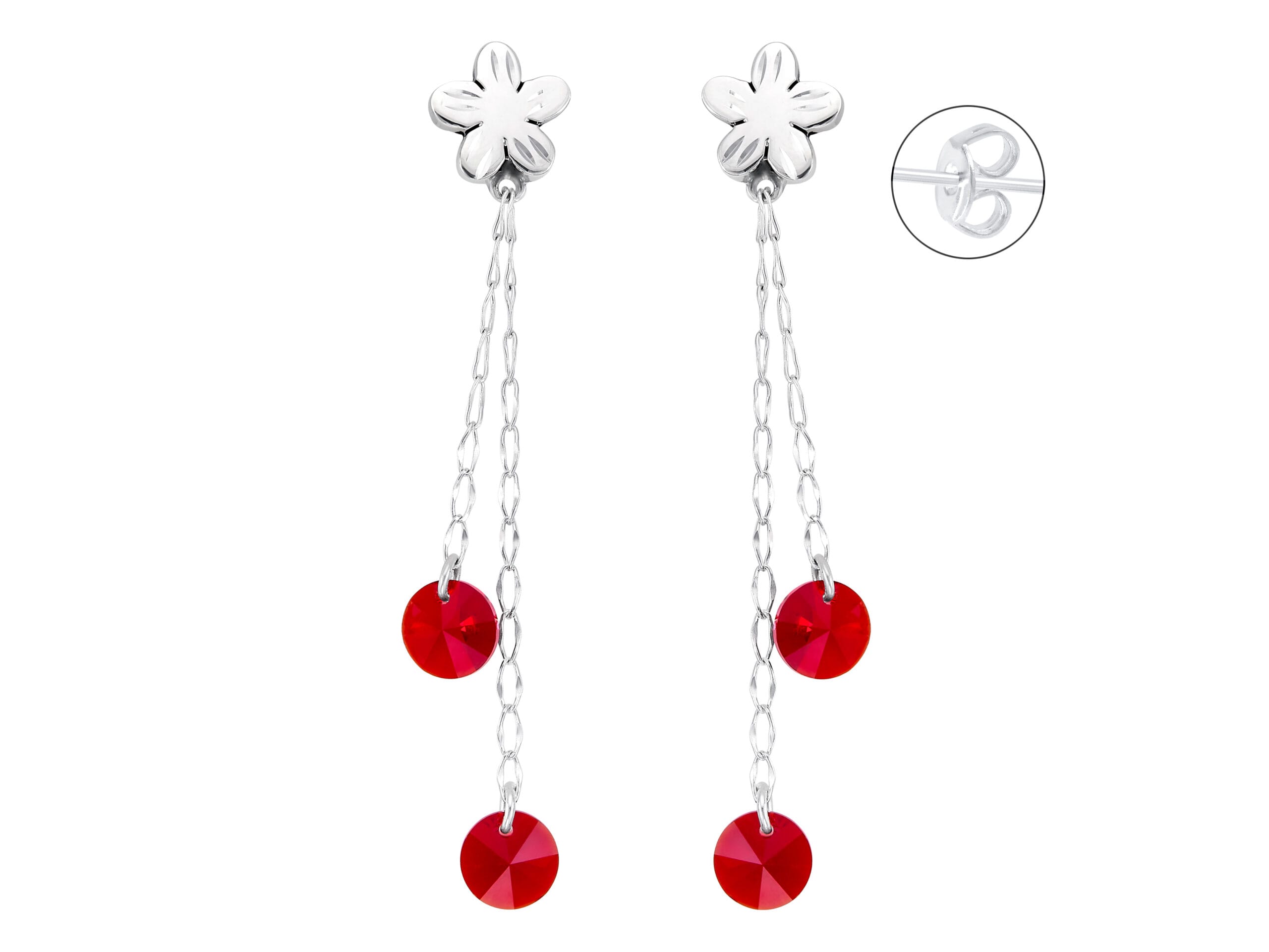 Aretes Flor y Cristal Rojo Colgante