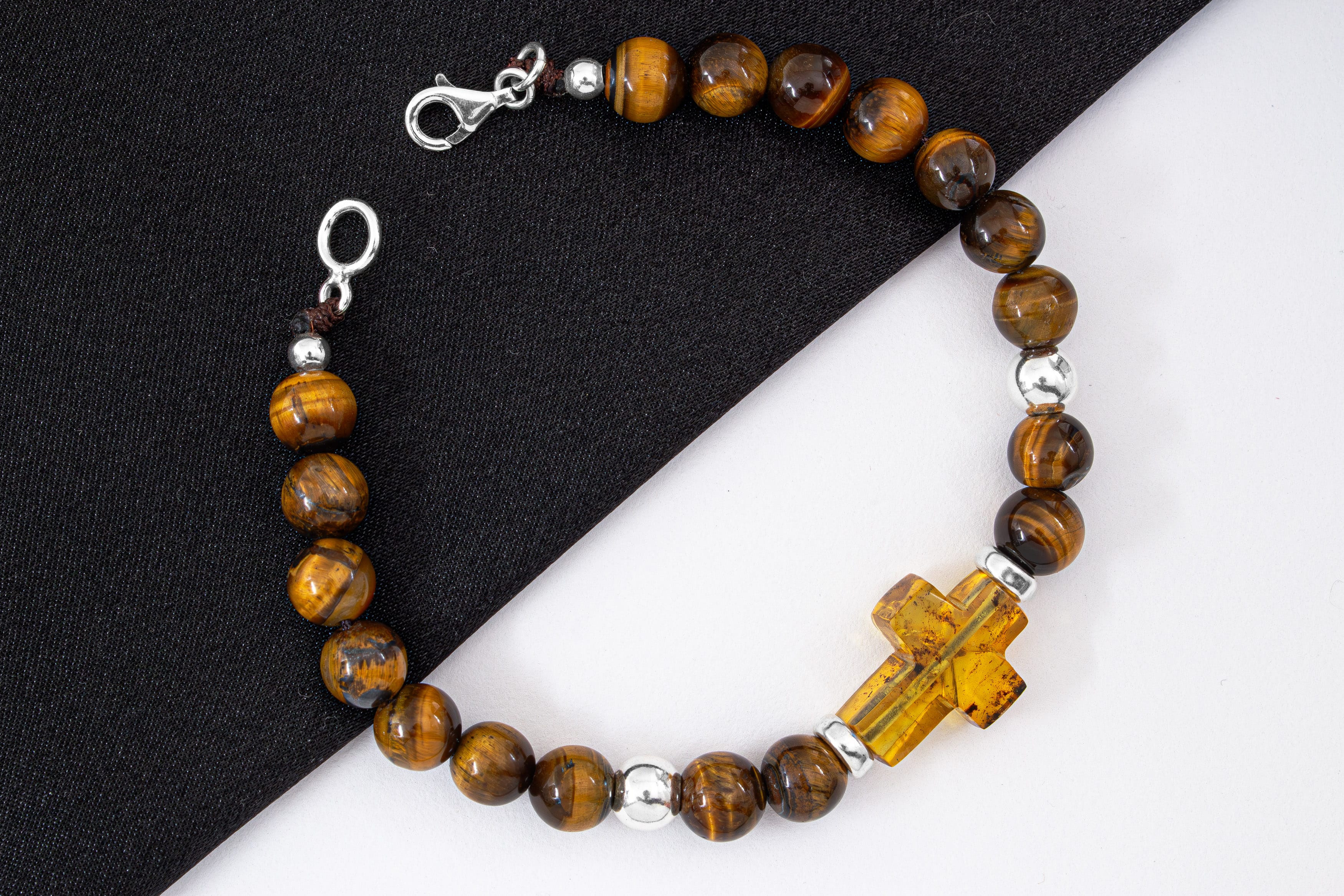 Pulsera Piedras Natural Ojo de Tigre y Cruz Ambar Natural